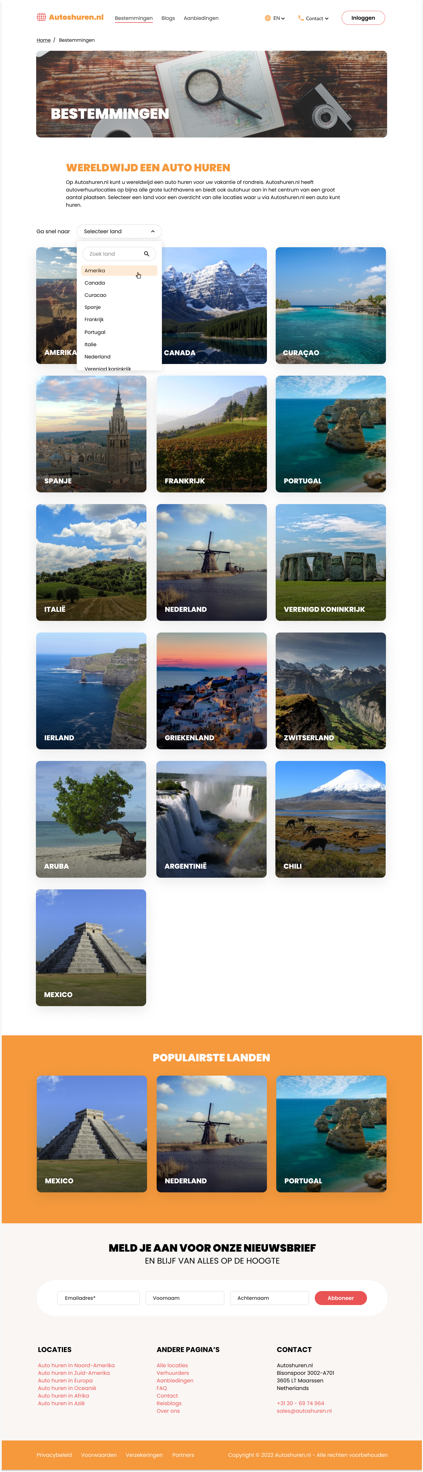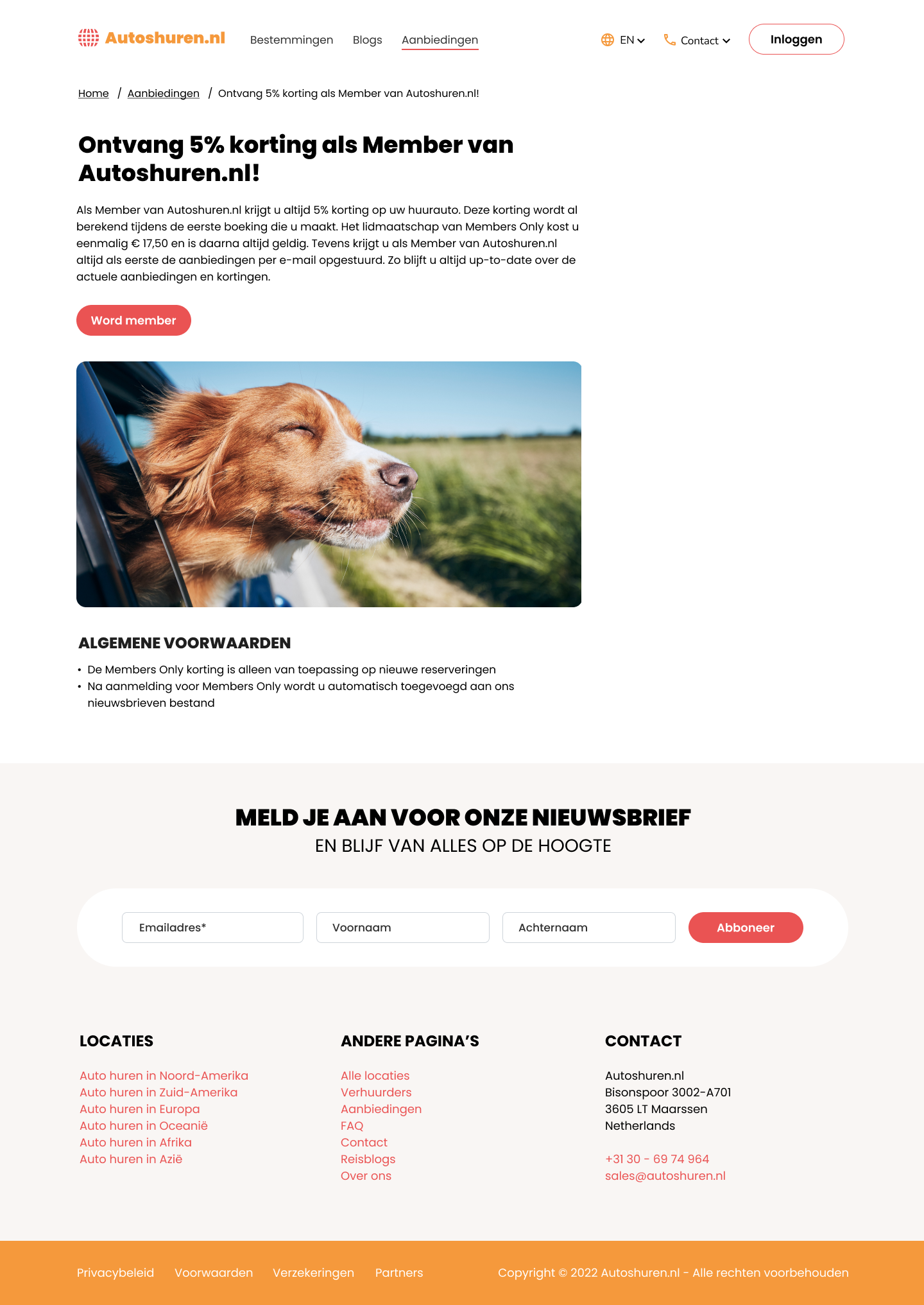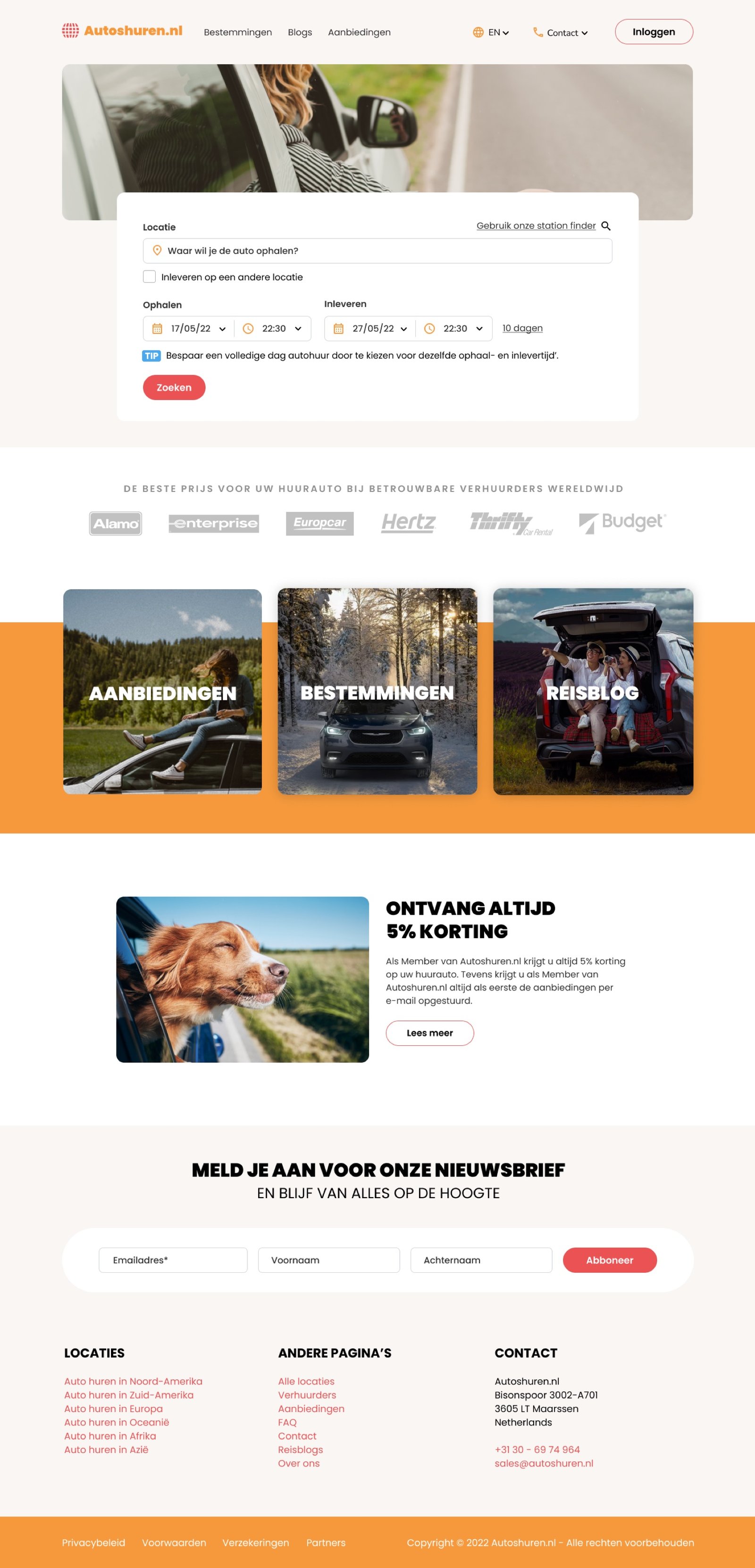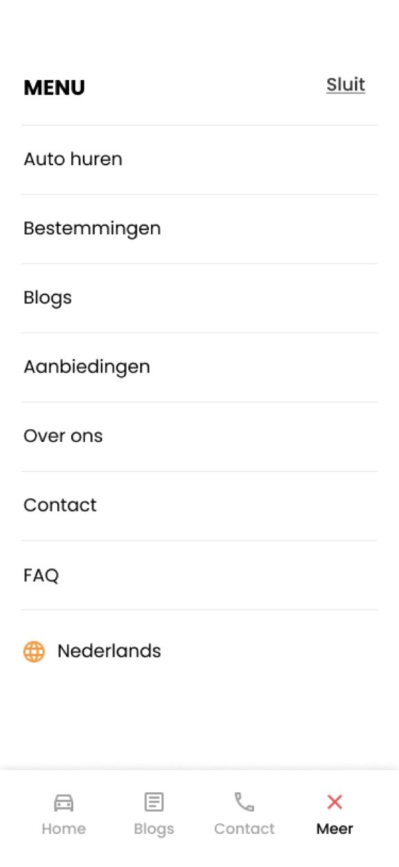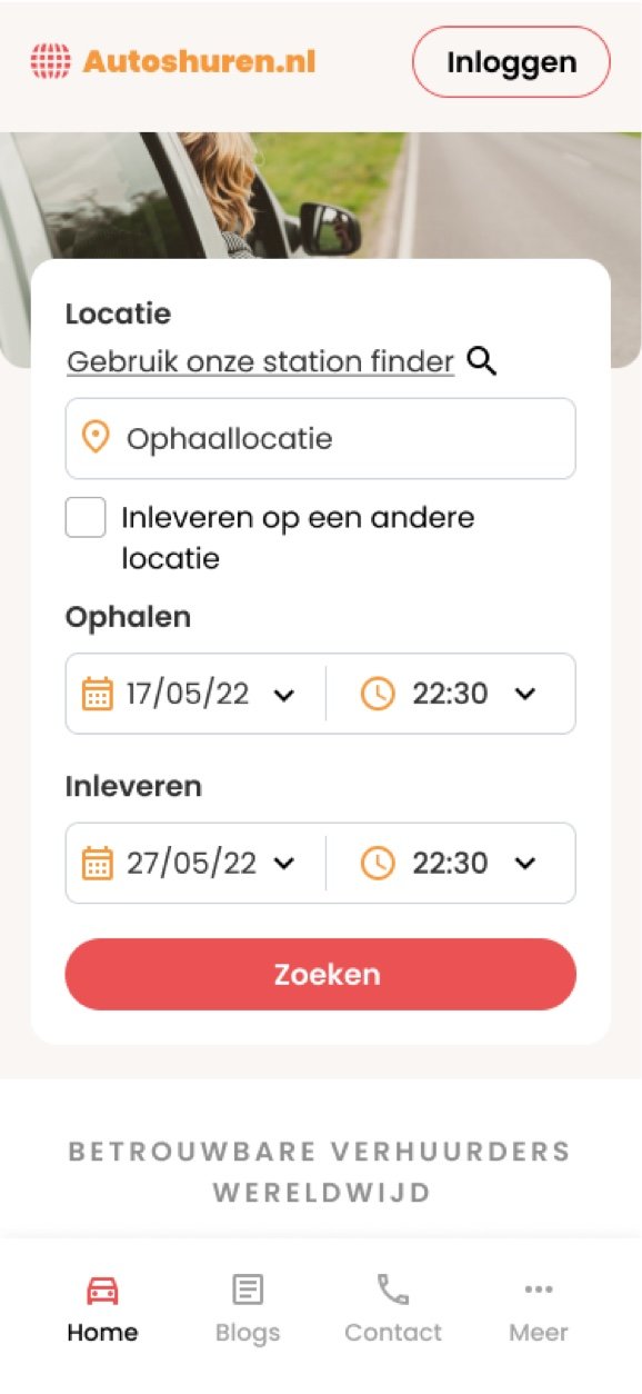 The starting point of the website. This page is a quick entry to the most important parts of Autoshuren.nl.
